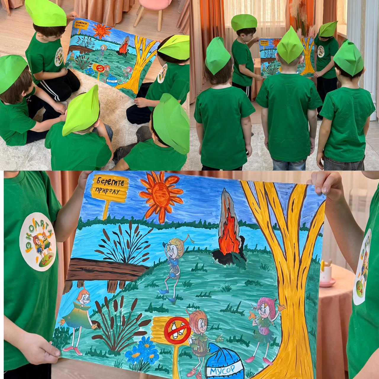 - чистые водоемы и леса: дети показывали, как важно не мусорить у рек и озер, как красиво выглядят зеленые деревья и чистая вода;