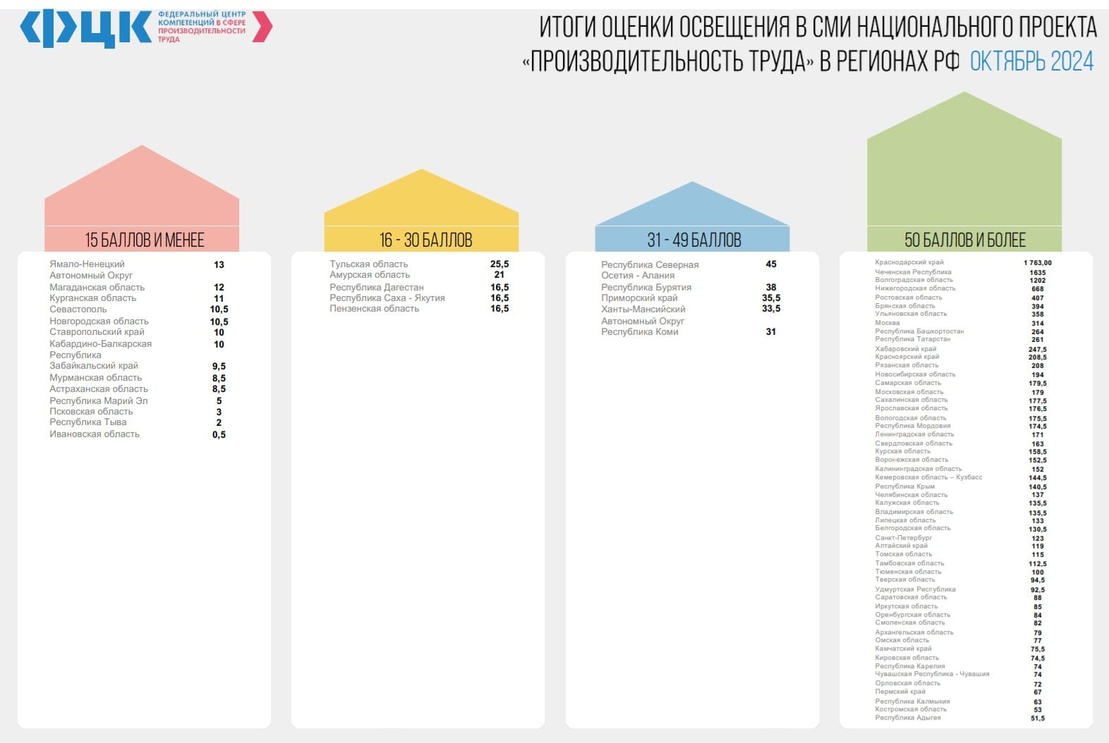 25.11.2024Чеченская Республика продолжает лидировать в рейтинге Федерального центра компетенции (ФЦК) по освещению мероприятий национального проекта «Производительность труда».